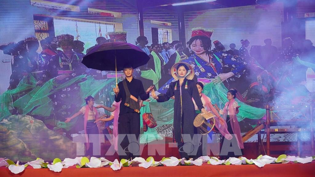 Trình diễn trang phục và giao lưu văn nghệ tại lễ hội Then Kin Pang. Ảnh: Việt Dũng - TTXVN