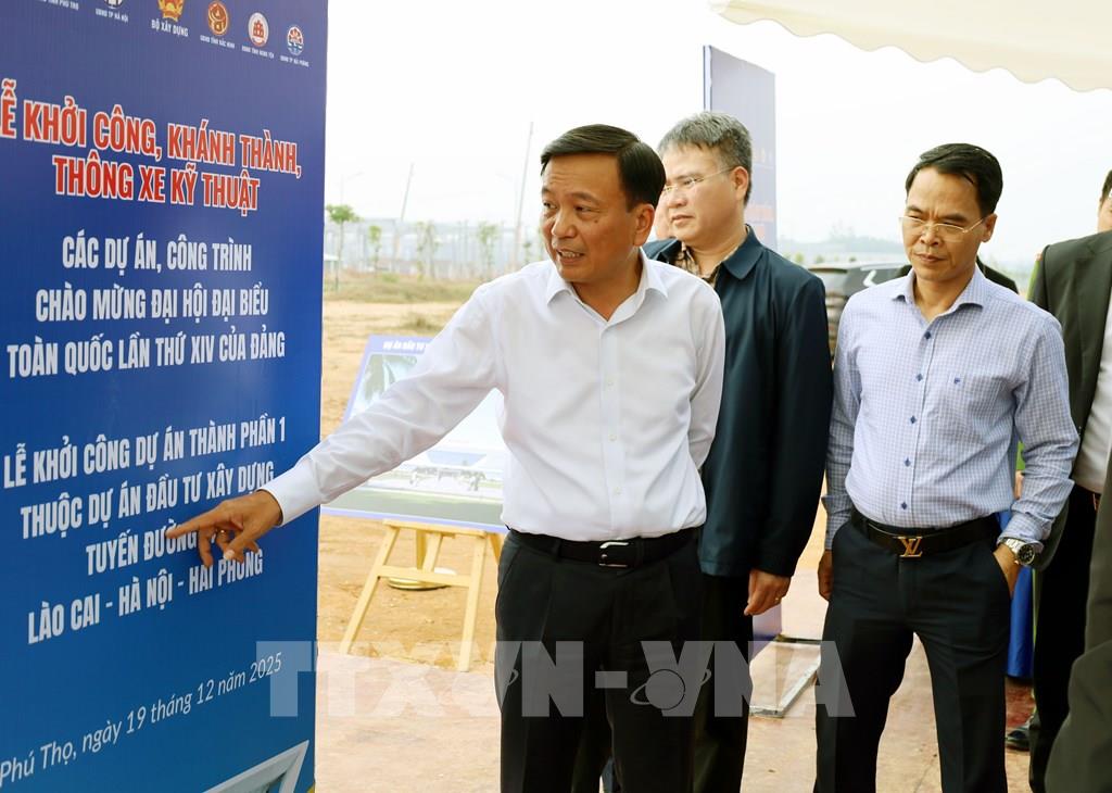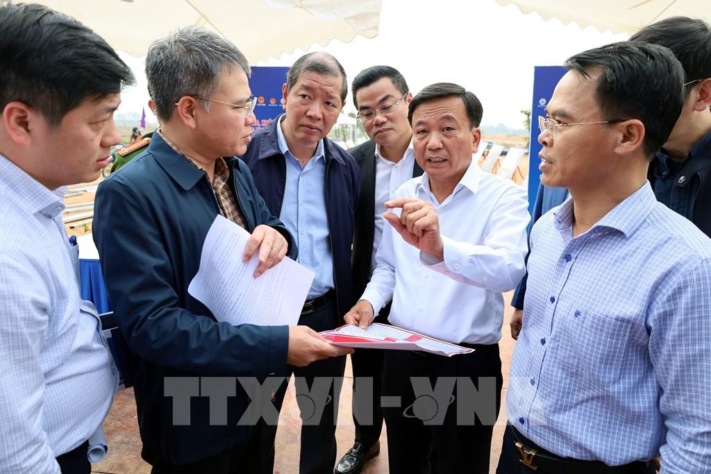 Thứ trưởng Bộ Xây dựng Nguyễn Danh Huy kiểm tra hiện trường khu vực khởi công dự án đường sắt Lào Cai – Hà Nội – Hải Phòng tại Ga Phú Thọ. Ảnh: Tạ Toàn – TTXVN