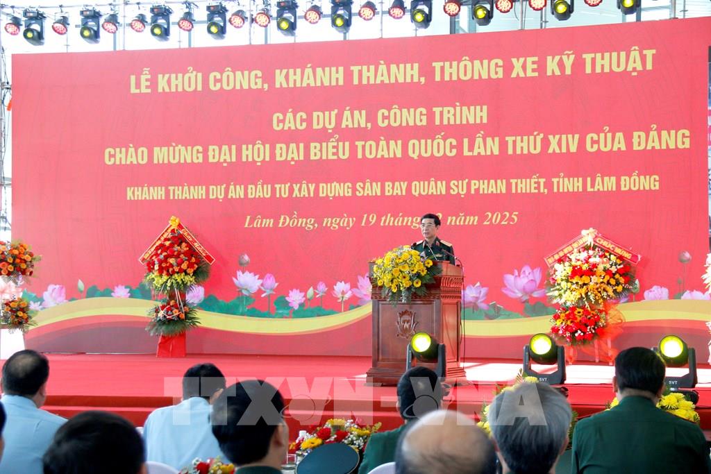 Đại tướng Phan Văn Giang, Ủy viên Bộ Chính trị, Bộ trưởng Bộ Quốc phòng phát biểu tại Lễ Khánh thành. Ảnh: Nguyễn Thanh - TTXVN