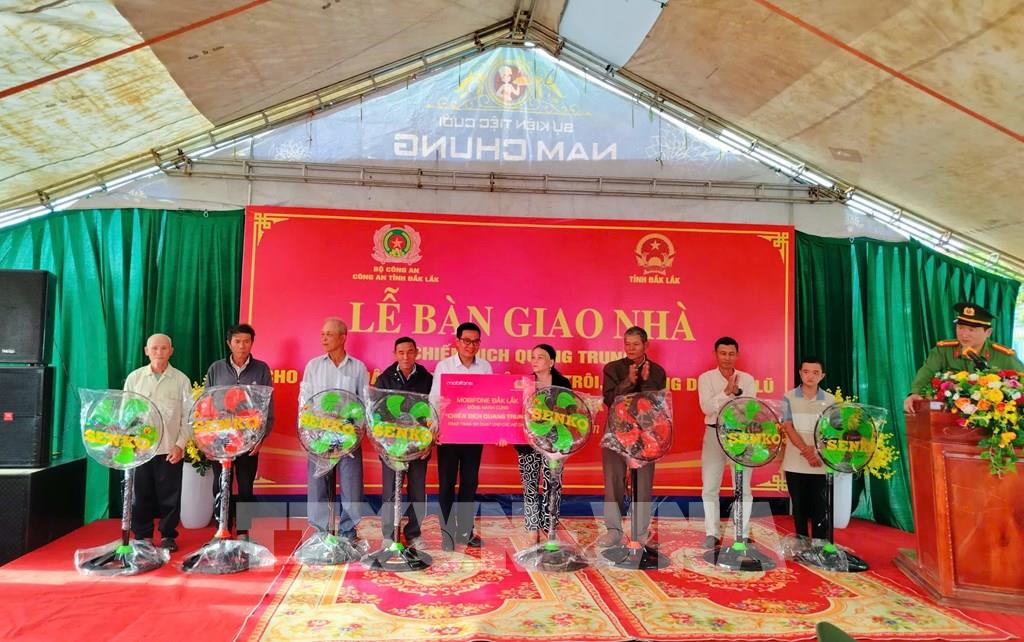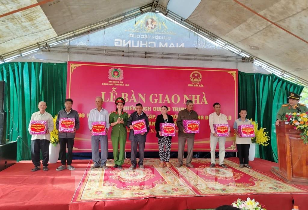 Công an tỉnh Đắk Lắk tặng đồ gia dụng cho hộ dân trong “Chiến dịch Quang Trung”. Ảnh: TTXVN phát