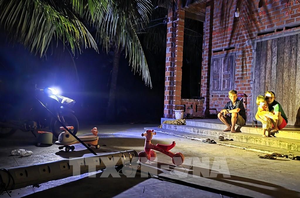 Người dân xã Xuân Cảnh (tỉnh Đắk Lắk) dùng đèn xe máy thắp sáng do mất điện (ảnh chụp tối 12/11). Ảnh: Tường Quân – TTXVN