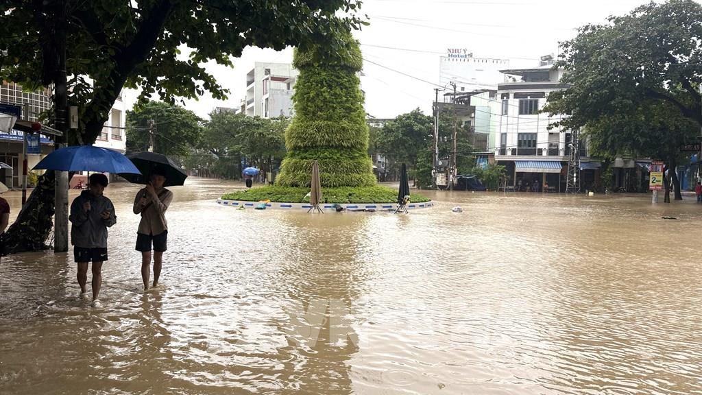 Đường phố Tuy Hoà ngập nhiều vị trí. Ảnh: Tường Quân - TTXVN
