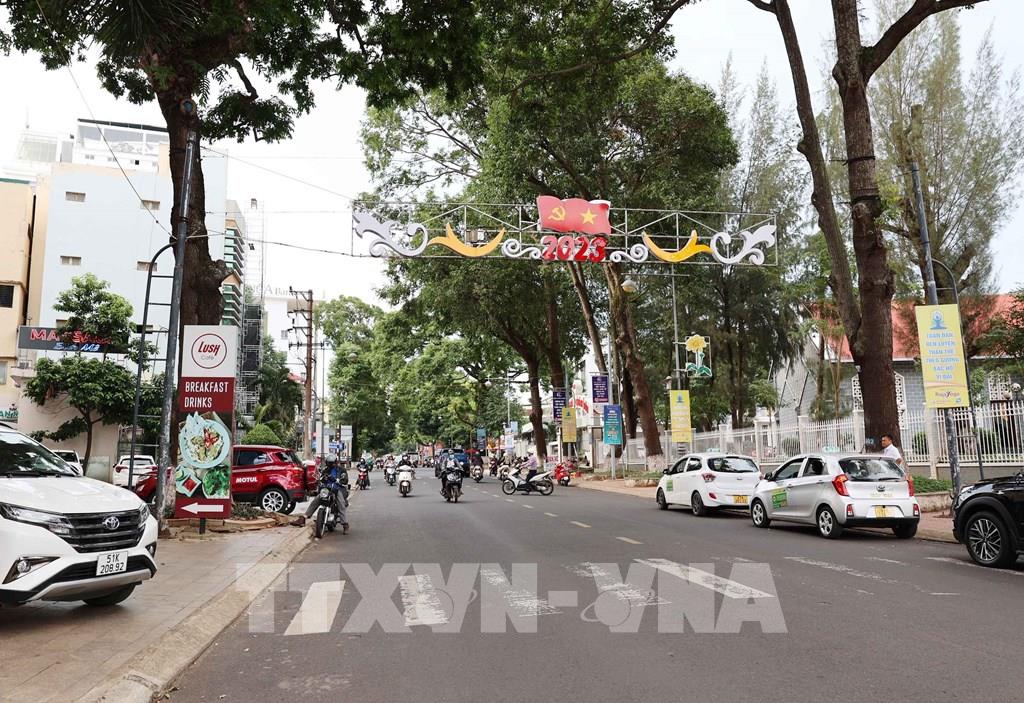 Tuyến phố thanh toán không tiền mặt triển khai thí điểm tại tuyến đường Phan Chu Trinh - trục đường chính có mật độ kinh doanh cao của thành phố Buôn Ma Thuột. Ảnh: Hoài Thu – TTXVN
