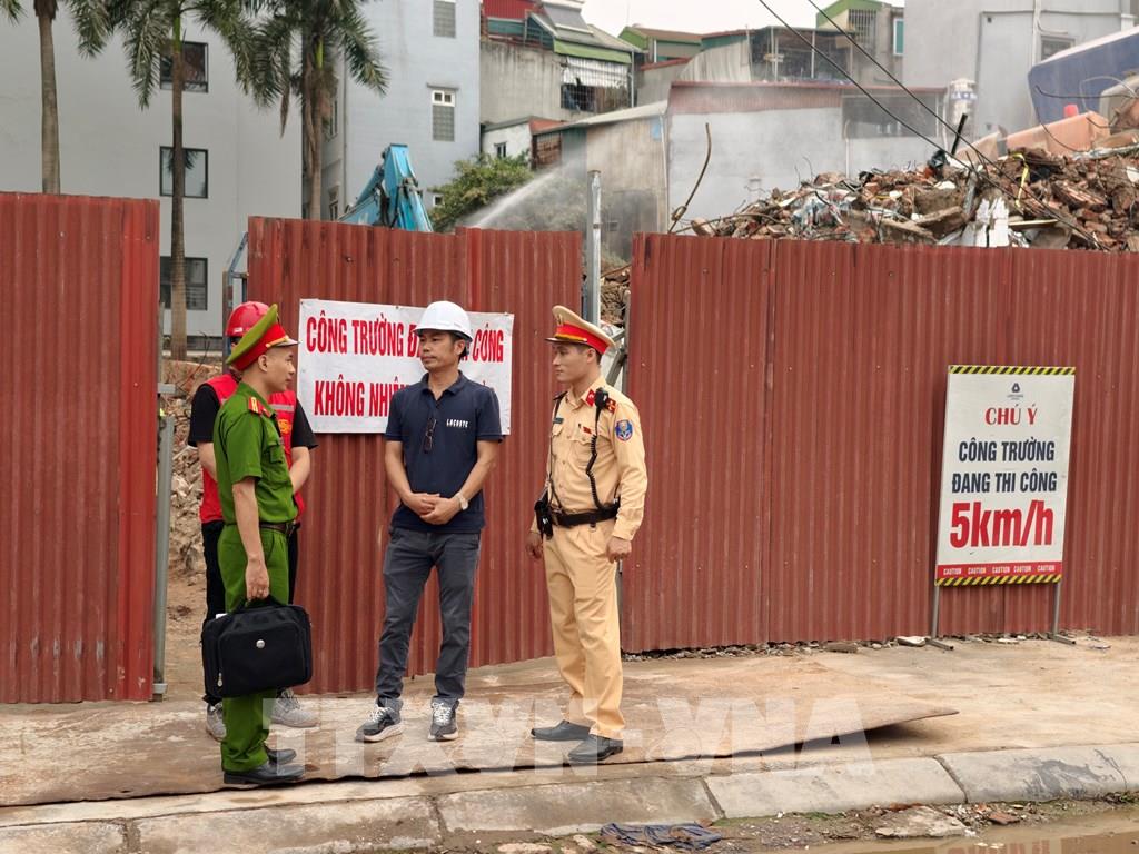 Bên cạnh tuần tra, kiểm soát, lực lượng chức năng phối hợp tuyên truyền, nhắc nhở đơn vị thi công tuân thủ quy đinh tại các công trình trọng điểm. Ảnh: Hùng Mạnh - TTXVN