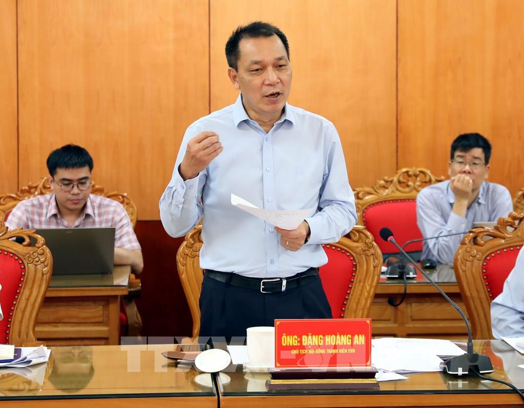 Ông Đặng Hoàng An, Chủ tịch Hội đồng thành viên, Tập đoàn Điện lực Việt Nam, phát biểu tại buổi làm việc. Ảnh: Văn Đạt - TTXVN