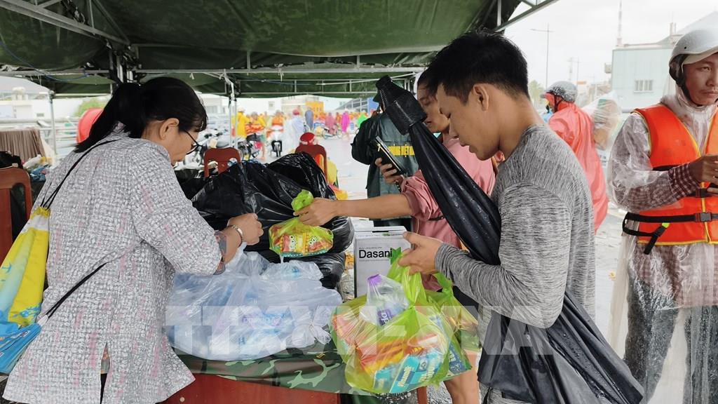 Tại khu vực vòng xoay Ngọc Hội (phường Tây Nha Trang), lực lượng vũ trang dựng lán trại để tiếp nhận người dân di dời. Chính quyền địa phương cùng các nhà hảo tâm cung cấp lương thực, nước uống và quần áo cho nhân dân.Từ sáng sớm, chị Bùi Thị Nhung (phường Bắc Nha Trang) đã mang hàng trăm ổ bánh mì và chai nước đến hỗ trợ. Chị cho biết, nước ngập sâu khiến ai cũng gặp khó khăn. Bà con nhận trực tiếp hoặc mang về cho người thân, hàng xóm không thể ra ngoài. Mọi người cùng góp sức chia sẻ phần ăn cho những người cần. Người Việt Nam luôn luôn giúp đỡ nhau trong những lúc khó khăn như vậy.