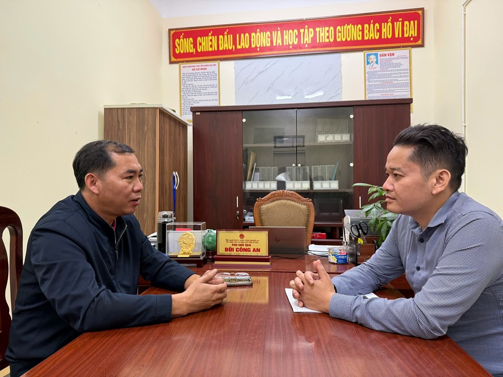 Ông Bùi Công An - Phó Chủ tịch UBND xã Yên Xuân, tỉnh Nghệ An (bên trái ảnh) trao đổi với phóng viên TTXVN. Ảnh: Mai Phương/Bnews/vnanet.vn