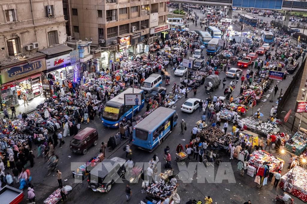 Cảnh đông đúc người và phương tiện tại một chợ đường phố trên Quảng trường Attaba ở thủ đô Cairo, Ai Cập. Ảnh: AFP/TTXVN
