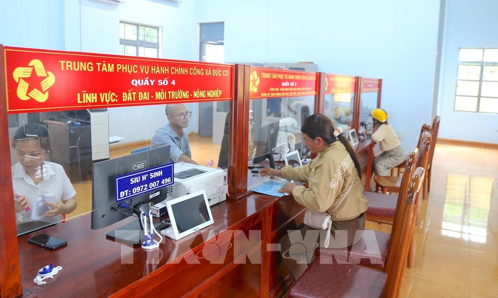 Người dân đến làm các thủ tục hành chính tại Trung tâm phục vụ hành chính công xã Đức Cơ, tỉnh Gia Lai. Ảnh: Quang Thái- TTXVN