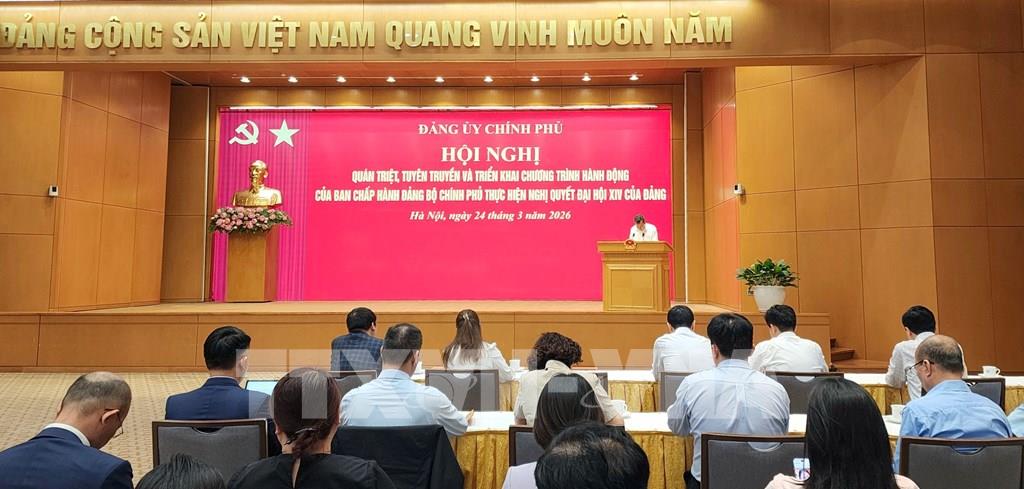 Quang cảnh Hội nghị quán triệt Chương trình hành động của Ban Chấp hành Đảng bộ Chính phủ thực hiện Nghị quyết Đại hội XIV của Đảng. Ảnh: Chu Thanh Vân - TTXVN