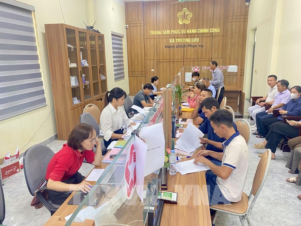 Người dân giao dịch tại Trung tâm phục vụ hành chính công xã Trường Lưu (Hà Tĩnh). Ảnh: Hữu Quyết - TTXVN
