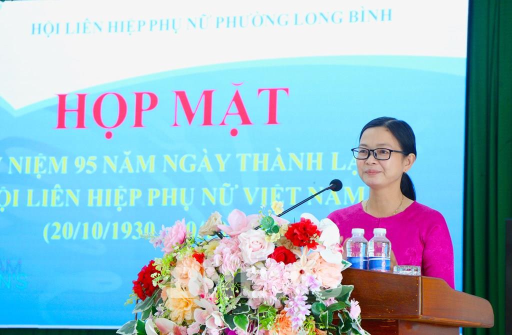 Bà Huỳnh Thị Duyền, Phó Chủ tịch Ủy ban Mặt trận Tổ quốc Việt Nam phường Long Bình - Chủ tịch Hội Liên hiệp phụ nữ phường nhấn mạnh: Trong công cuộc công nghiệp hóa – hiện đại hóa đất nước, phụ nữ phường Long Bình sẽ tiếp tục khẳng định vai trò và vị trí của mình trong mọi lĩnh vực từ chính trị, kinh tế, khoa học, giáo dục đến văn hóa, nghệ thuật. Phát huy truyền thống tốt đẹp, tích cực tham gia các phong trào thi đua yêu nước, xây dựng gia đình hạnh phúc, nuôi dạy con ngoan học giỏi, lao động sản xuất giỏi, tham gia công tác xã hội, xây dựng nếp sống văn minh, góp phần phát triển kinh tế - xã hội của địa phương.