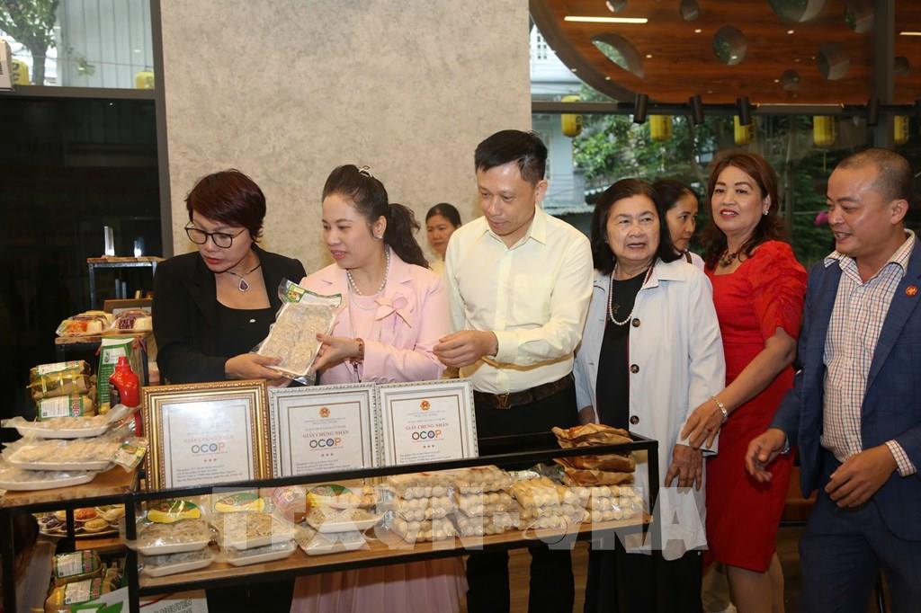 Trong khuôn khổ tọa đàm, các gian hàng trưng bày sản phẩm OCOP tiêu biểu của Hà Nội được tổ chức tại không gian phường Tây Hồ. Ảnh: TTXVN phát