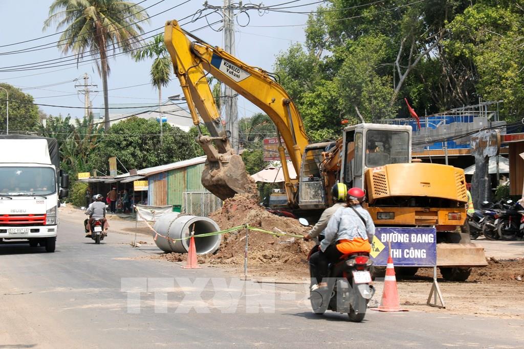 Dự án nâng cấp đường Trần Quý Cáp có tổng vốn gần 245 tỷ đồng đang chậm tiến độ do vướng mặt bằng. Ảnh: Nguyễn Thanh - TTXVN