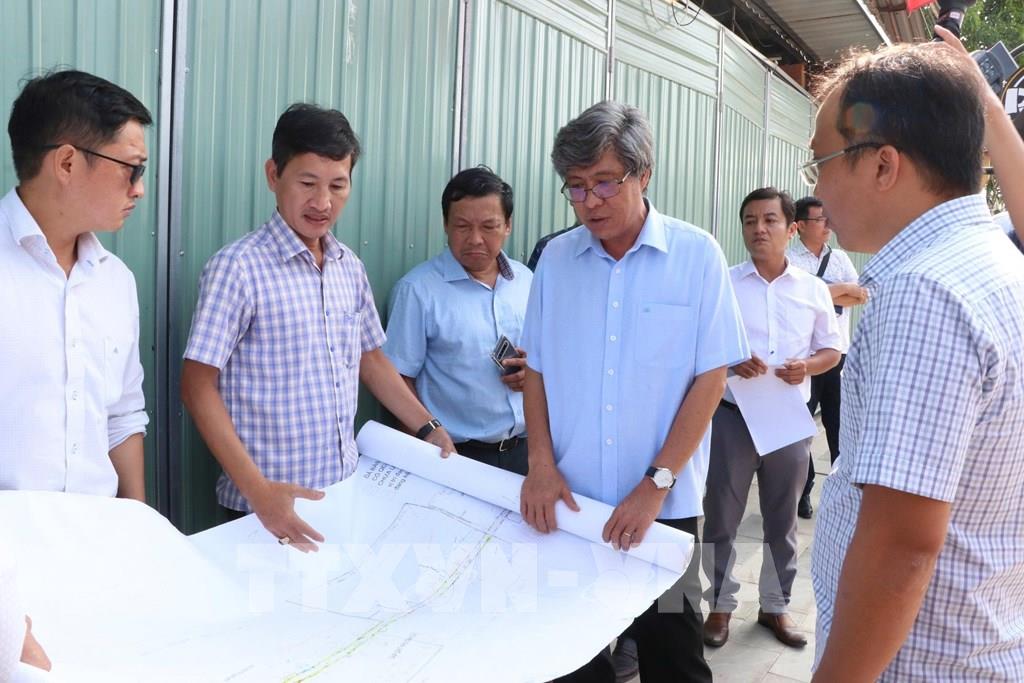 Đoàn công tác của UBND tỉnh Lâm Đồng kiểm tra tiến độ thi công đường Huỳnh Thúc Kháng (phường Mũi Né). Ảnh: Nguyễn Thanh - TTXVN