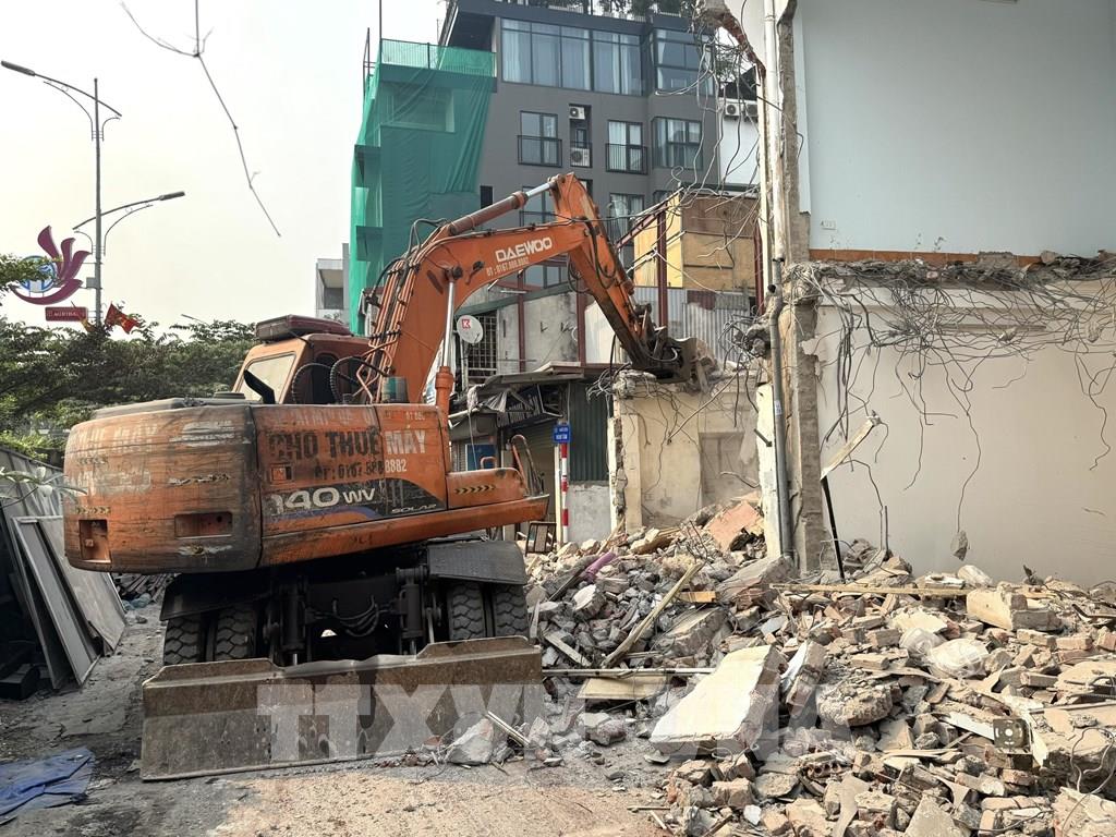 Công tác giải phóng mặt bằng được tiến hành ngay sau khi các hộ thuộc diện di dời hoàn trả mặt bằng. Ảnh: Quốc Lũy - TTXVN