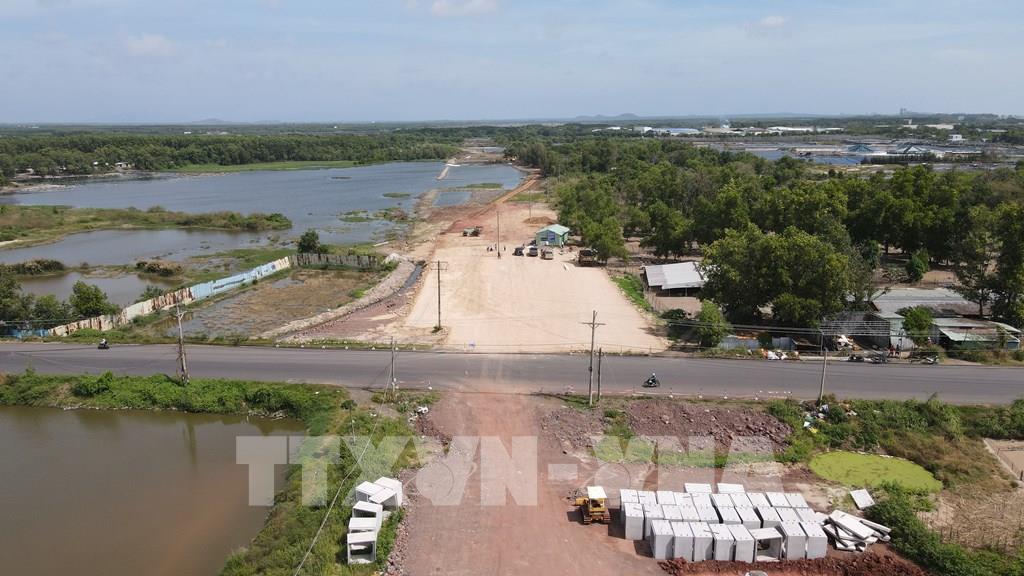 Gói thầu 33,34,35 đoạn từ ngã ba Long Phù đến cầu Sông Ray và nhánh kết nối Tỉnh lộ 44B, đây là đoạn vừa nâng cấp mở rộng vừa xây dựng tuyến mới của dự án DT994 đường ven biển Vũng Tàu - Bình Thuận. Ảnh: Hoàng Nhị - TTXVN