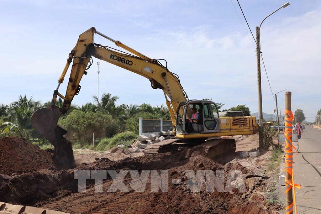 Nhà thầu khẩn trương thi công Dự án nâng cấp, mở rộng Tỉnh lộ 994 Vũng Tàu - Bình Thuận đoạn qua xã Phước Hải. Ảnh: Hoàng Nhị - TTXVN.