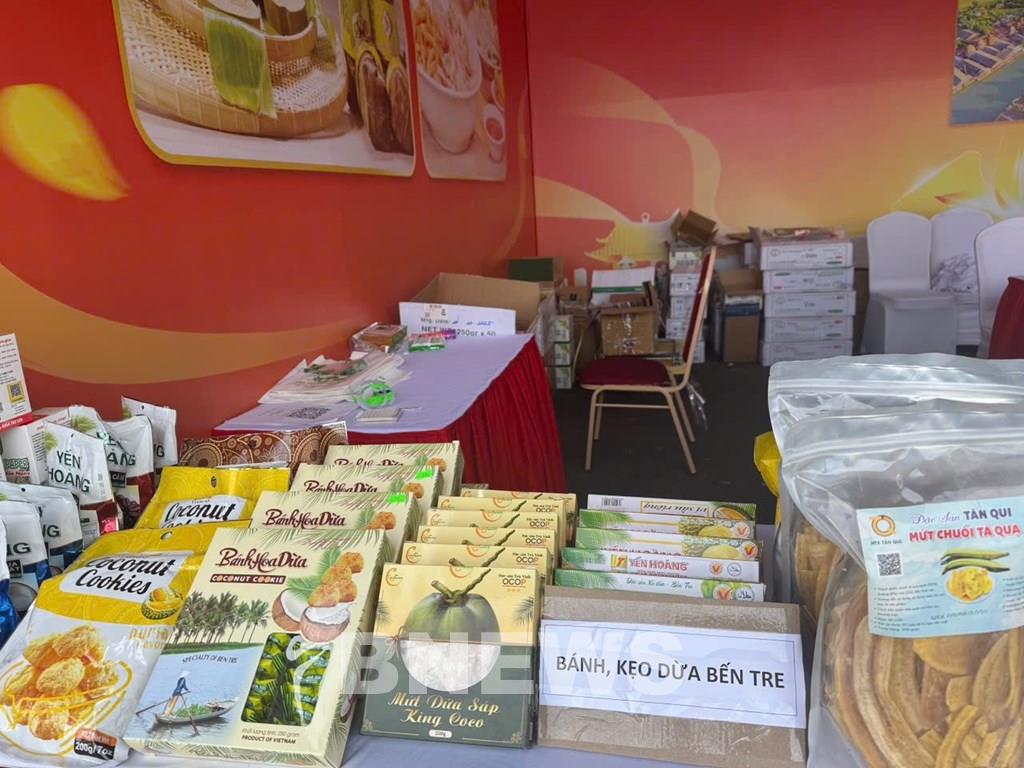 Tại khu trưng bày của các tỉnh miền Tây Nam Bộ, những thương hiệu quen thuộc như gạo đặc sản, trái cây sấy, mật ong rừng U Minh, cá khô Đồng Tháp, cà phê Cần Thơ hay kẹo dừa Bến Tre thu hút đông đảo khách tham quan.