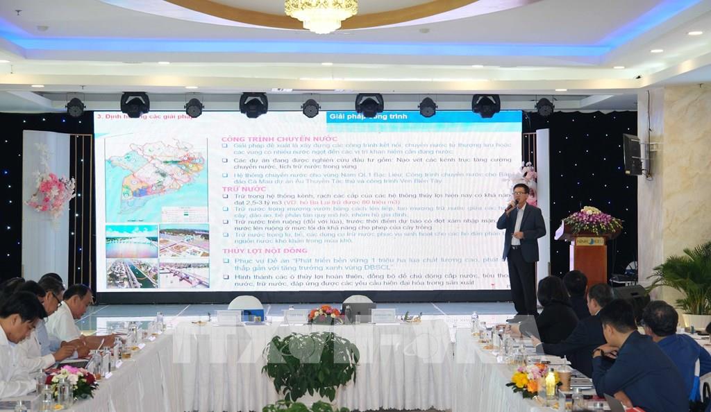 PGS.TS Nguyễn Phú Quỳnh, Phó Viện trưởng Viện Khoa học thủy lợi miền Nam (Bộ Nông nghiệp và Môi trường) chia sẻ các thách thức về nguồn nước đối với Đồng bằng sông Cửu Long. Ảnh: Thanh Liêm - TTXVN