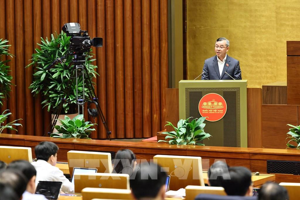Bộ trưởng Bộ Tài chính Ngô Văn Tuấn giải trình, làm rõ một số vấn đề đại biểu Quốc hội nêu. Ảnh: Minh Đức - TTXVN