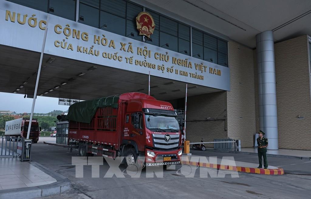 Xuất nhập khẩu qua Cửa khẩu quốc tế đường bộ số II Kim Thành (Lào Cai). Ảnh: Trần Việt - TTXVN