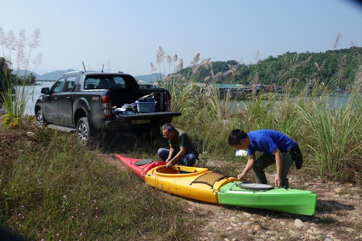 Anh anh Phạm Trung Tuyến cùng 2 con nhỏ đã phiêu lưu trên một chiếc bán tải, với đủ đồ dùng, lều bạt, thuyền kayak và men theo những con đường rất ít xe hơi đi tới