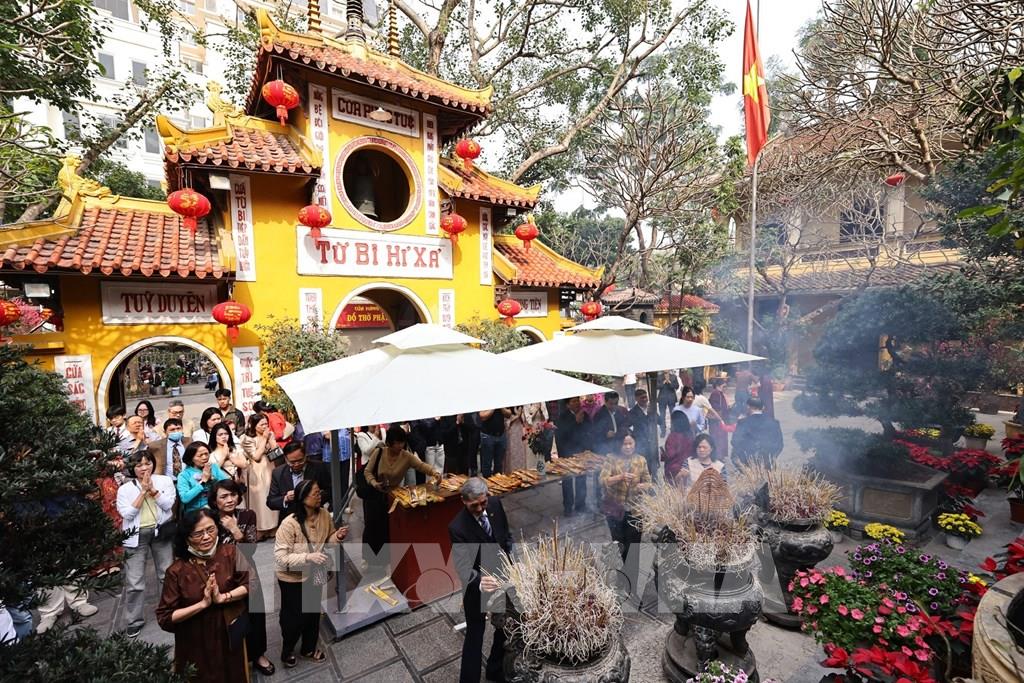 Người dân Hà Nội đi lễ đầu năm tại chùa Quán Sứ sáng mùng 1 Tết Bính Ngọ. Ảnh: Minh Đức – TTXVN