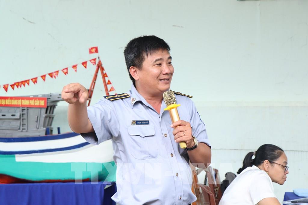 Trần Hoàng Dũng, Chi cục trưởng Chi cục Thủy sản và Kiểm ngư thành phố Cần Thơ thông tin về quy định khai thác thủy sản tránh vi phạm IUU. Ảnh: Thu Hiền - TTXVN