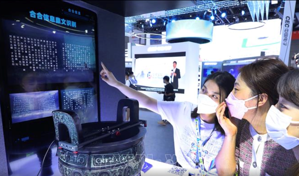 Hệ thống nhận dạng AI được giới thiệu với khách tham quan tại Hội nghị Trí tuệ nhân tạo thế giới ở Thượng Hải, Trung Quốc. Ảnh: THX/ TTXVN