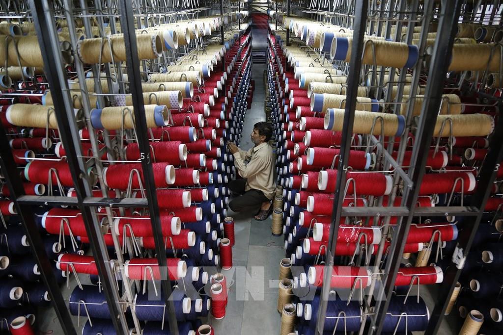 Công nhân kiểm tra các ống sợi trên máy dệt thảm tại một nhà máy ở ngoại ô Jammu, Ấn Độ. Ảnh tư liệu: AFP/TTXVN
