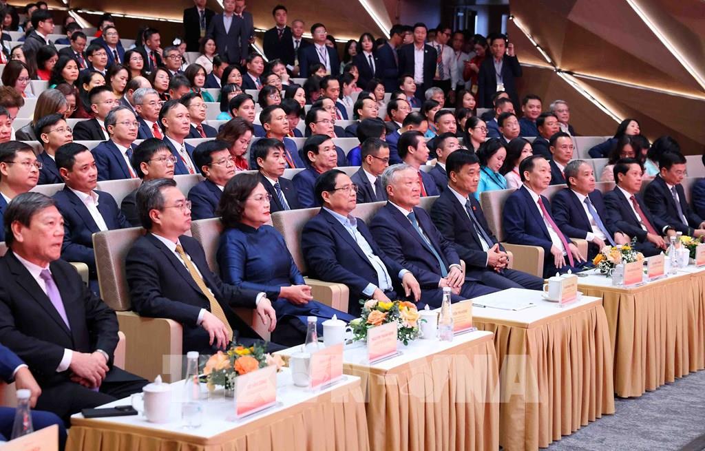 Thủ tướng Phạm Minh Chính và các đại biểu tham dự Đại hội thi đua yêu nước ngành Ngân hàng lần thứ 9. Ảnh: Phạm Kiên - TTXVN