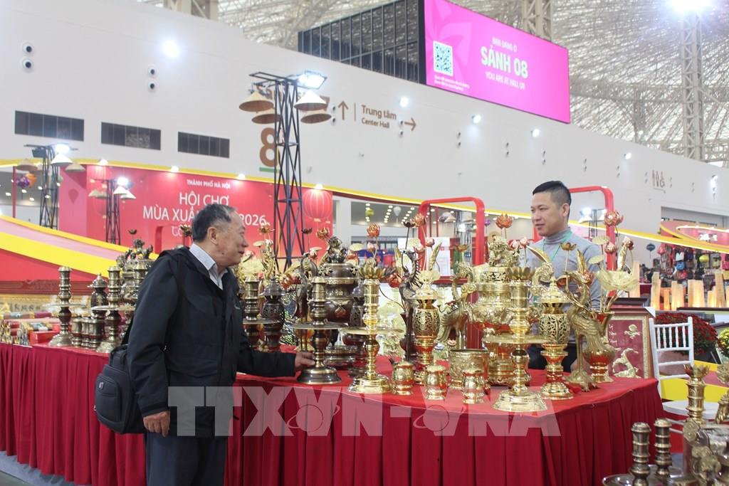 Tham gia Hội chợ quốc gia Mùa Xuân 2026, các làng nghề truyền thống của Hà Nội đã mang đến nhiều sản phẩm thủ công đặc trưng, giàu giá trị văn hóa. Ảnh: TTXVN