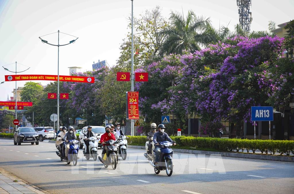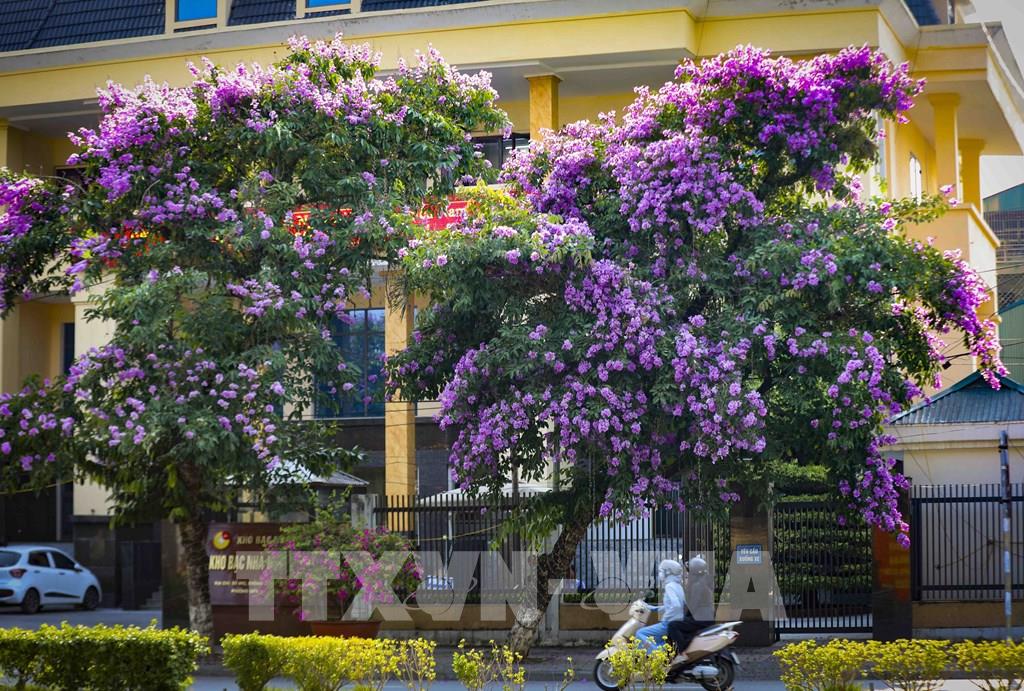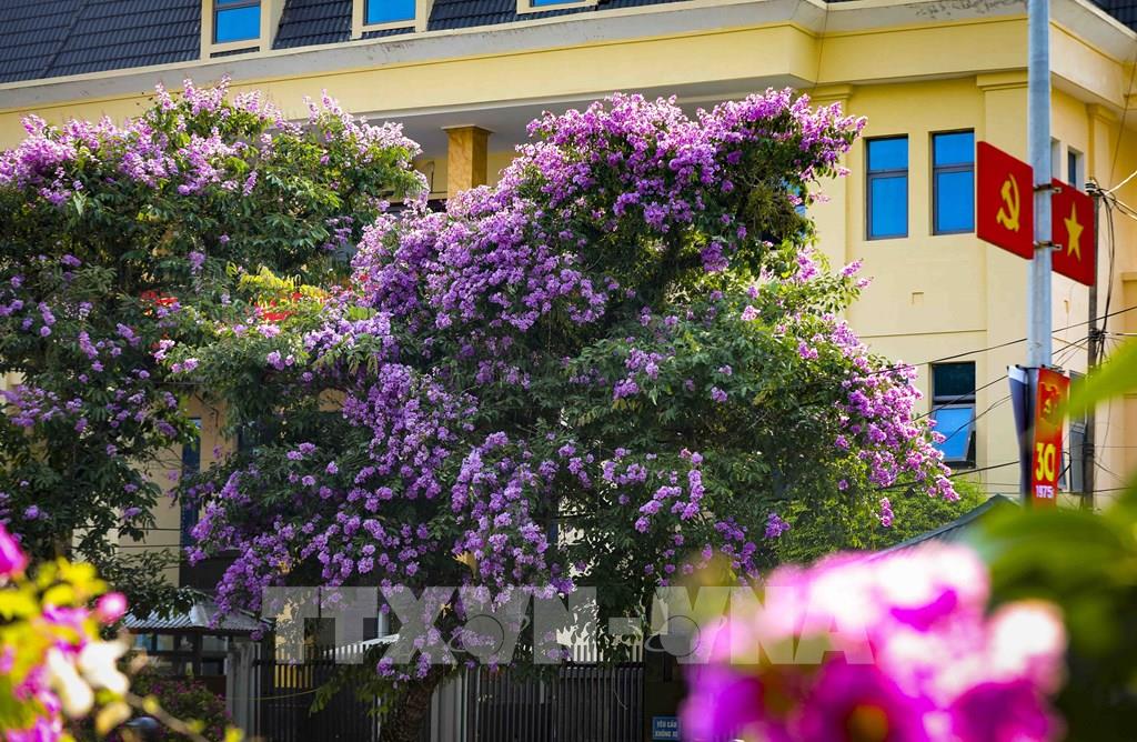 Sắc tím bằng lăng phủ kín tuyến phố trung tâm, mang đến vẻ dịu dàng, lãng mạn cho phố núi Điện Biên. Ảnh: Xuân Tư - TTXVN