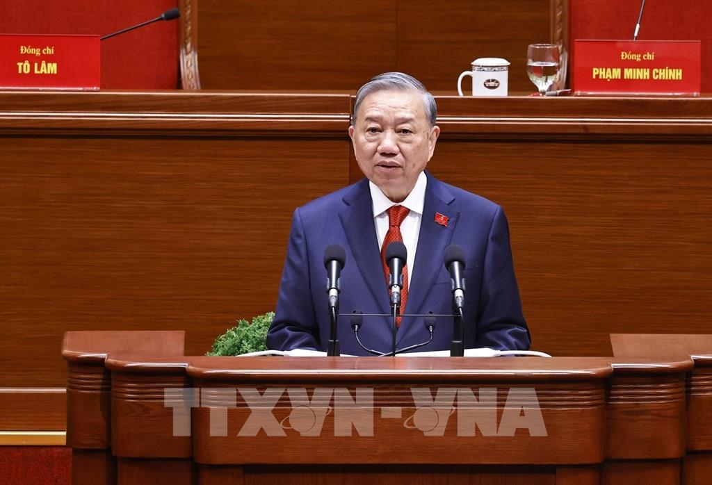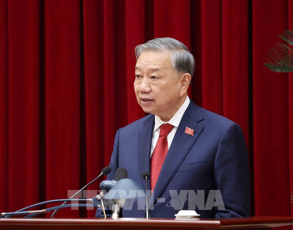 Tổng Bí thư Tô Lâm phát biểu bế mạc Hội nghị lần thứ nhất Ban Chấp hành Trung ương Đảng khóa XIV. Ảnh: TTXVN