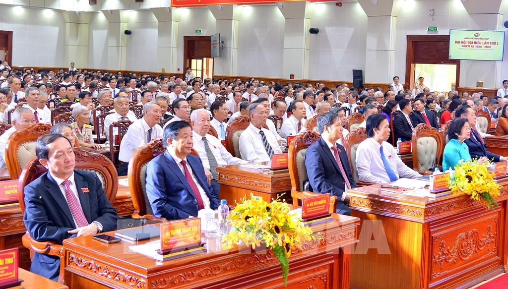 Trình bày Báo cáo chính tại Đại hội, Phó Bí thư Thường trực Tỉnh ủy Đồng Tháp Nguyễn Hải Trâm nêu rõ, trong 5 năm qua, dù gặp nhiều khó khăn do dịch bệnh, biến đổi khí hậu và biến động kinh tế thế giới, Đảng bộ và nhân dân trong tỉnh nỗ lực phấn đấu đạt được những kết quả quan trọng. Trong 23 chỉ tiêu nghị quyết đề ra, có 17 chỉ tiêu đạt và vượt. Tốc độ tăng trưởng GRDP bình quân 5 năm đạt 5,51%; GRDP bình quân đầu người khoảng 85,5 triệu đồng; thu ngân sách nhà nước tăng bình quân 2,25%/năm. Cơ cấu kinh tế chuyển dịch tích cực, tỷ trọng nông - lâm- thủy sản giảm, công nghiệp - xây dựng và dịch vụ tăng. Tỉnh tập trung vào 6 khâu đột phá: Phát triển nông nghiệp; xây dựng sản phẩm chủ lực, vùng động lực; phát triển doanh nghiệp và khởi nghiệp; kết cấu hạ tầng; nguồn nhân lực; cải cách hành chính và xây dựng Đảng. Nông nghiệp chuyển hướng mạnh sang kinh tế nông nghiệp, các ngành hàng chủ lực như lúa gạo, trái cây, cá tra, hoa kiểng tăng trưởng cao, giữ vị trí hàng đầu cả nước. Doanh nghiệp, khởi nghiệp phát triển; số doanh nghiệp mới tăng 1,27 lần so với nhiệm kỳ trước. Hạ tầng giao thông, đô thị, nông thôn tiếp tục hoàn thiện, kết nối vùng được tăng cường. Giáo dục - đào tạo, khoa học công nghệ, chuyển đổi số có nhiều tiến bộ. Công tác xây dựng Đảng, cải cách hành chính, dân vận, kiểm tra giám sát đạt nhiều kết quả nổi bật. Tỉnh hoàn thành nhiệm vụ xây dựng nông thôn mới năm 2024. Công tác quốc phòng, an ninh, đối ngoại được giữ vững… Bên cạnh những thành công, tỉnh còn nhiều hạn chế, yếu kém như: Việc cụ thể hóa và sơ kết, tổng kết một số chủ trương, nghị quyết của Trung ương có lúc còn chậm; Năng lực cụ thể hóa, triển khai thực hiện nghị quyết, kết luận tại một số cấp ủy, đặc biệt là cấp cơ sở chưa tốt, chưa sát tình hình thực tế; Việc thực hiện nhiệm vụ phát triển kinh tế có một số chỉ tiêu chưa đạt…Tại phiên khai mạc, đồng chí Nguyễn Thành Tâm, Ủy viên Trung ương Đảng, Phó Trưởng Ban Tổ chức Trung ương công bố Quyết định của Bộ Chính trị chỉ định tham gia Ban Chấp hành, Ban Thường vụ, Bí thư, Phó Bí thư Tỉnh ủy Đồng Tháp nhiệm kỳ 2025-2030.