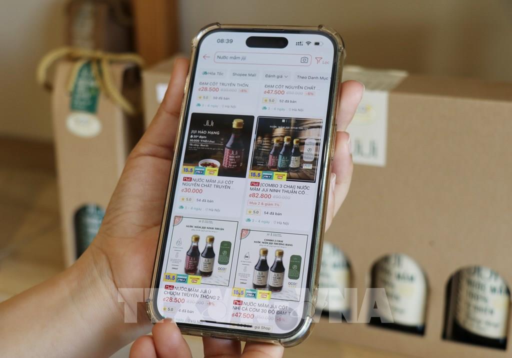 Sản phẩm nước mắm đạt chứng nhận OCOP 4 sao của Công ty TNHH thực phẩm và gia vị JiJi Ninh Thuận được bán trên sàn thương mại điện tử. Ảnh tư liệu: Nguyễn Thành – TTXVN