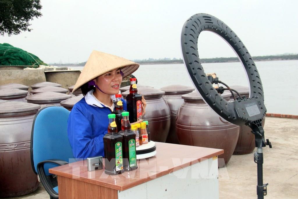Livestream bán hàng tại Công ty TNHH Cường Là (Ninh Bình). Ảnh tư liệu: Nguyễn Lành - TTXVN