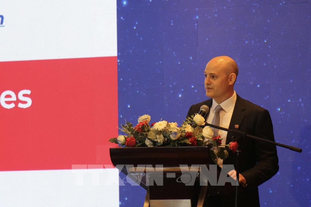 Ông Denzel Eades, Chủ tịch Hiệp hội Doanh nghiệp Anh Quốc tại Việt Nam, phát biểu khai mạc Hội nghị. Ảnh: Hứa Chung-TTXVN