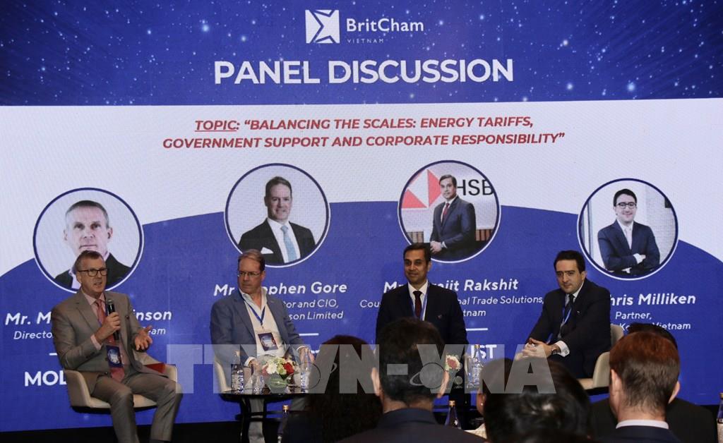 Các diễn giả tham gia phiên thảo luận với chủ đề tương lai của năng lượng tái tạo ở Việt Nam. Ảnh: Hứa Chung-TTXVN