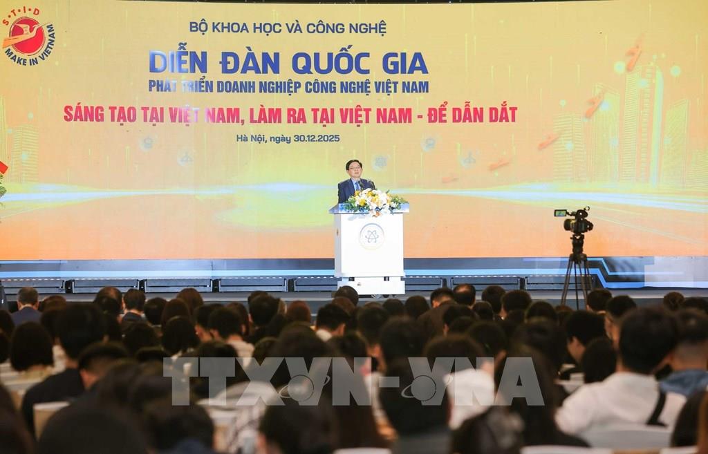 Chia sẻ định hướng, tư tưởng cốt lõi về Make in Viet Nam giai đoạn 2026-2030, Bộ trưởng Bộ Khoa học và Công nghệ Nguyễn Mạnh Hùng cho biết, cách đây 6 năm, chuỗi cung ứng bị đứt gãy, Việt Nam chọn một con đường mới, chuyển từ gia công sang thiết kế, làm chủ sáng tạo. Trong bối cảnh đó, nếu chỉ dừng lại ở làm chủ cho mình thì chưa đủ, Việt Nam cần một bước tiến mới tất yếu hơn, đó là: Sáng tạo tại Việt Nam, làm ra tại Việt Nam - để dẫn dắt.
