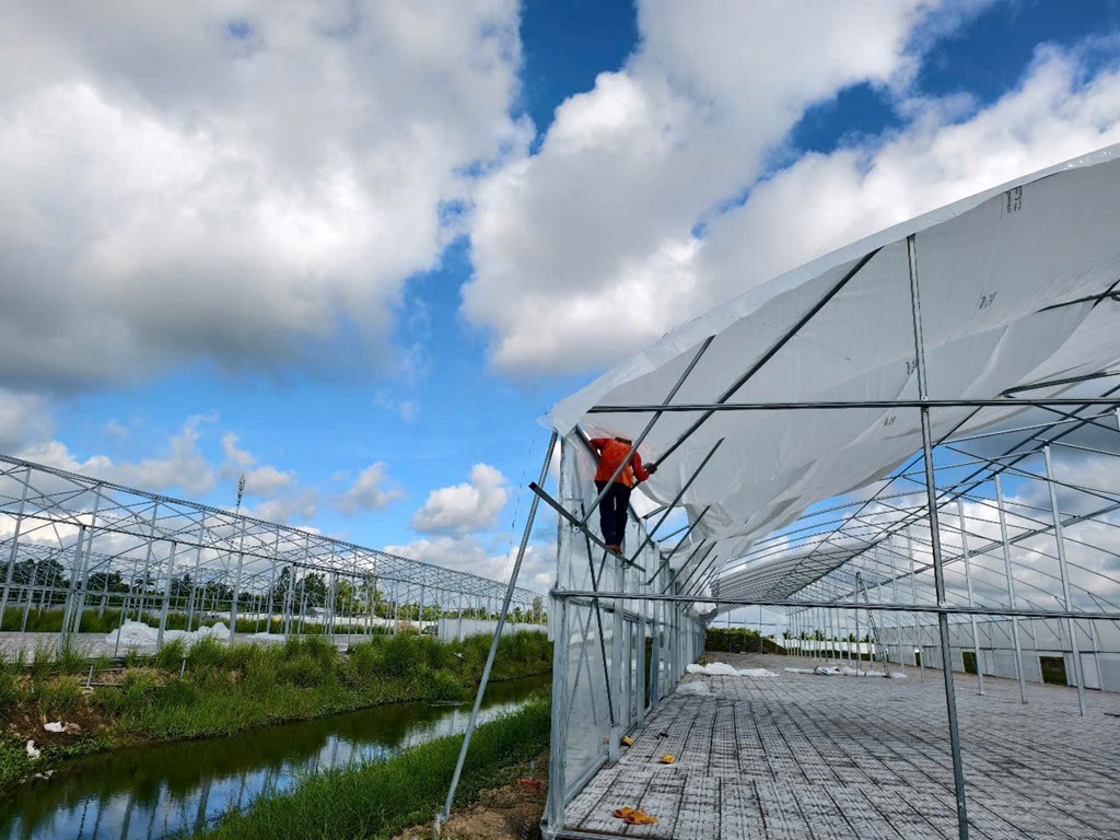 Nhà phơi sấy năng lượng mặt trời do Công ty Xuân Nông xây dựng tại xã Vị Thuỷ, TP. Cần Thơ. Tác giả: Châu Tâm