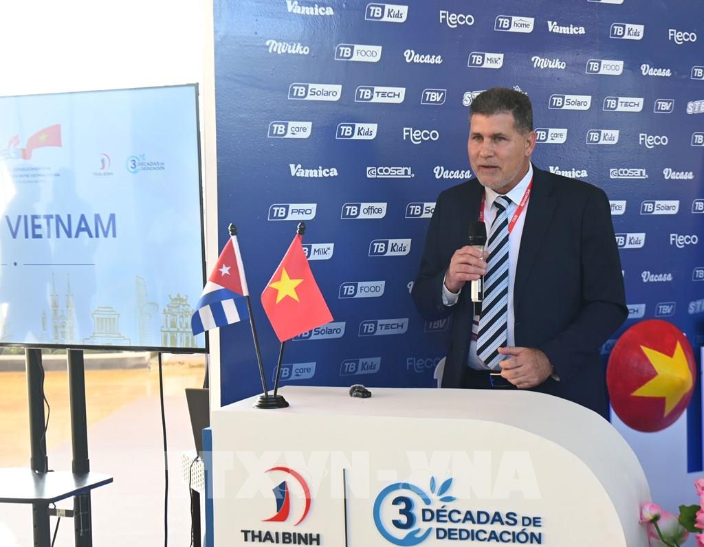 Tiếp đó, Phó Thủ tướng Oscar Pérez-Oliva Fraga, Đại sứ Lê Quang Long cùng đại diện Tổng công ty Thái Bình cắt băng khai trương gian hàng Việt Nam và tham dự các hoạt động giao lưu, kết nối doanh nghiệp, giới thiệu tiềm năng hợp tác song phương trong lĩnh vực lương thực, sản xuất hàng tiêu dùng và đầu tư công nghiệp.