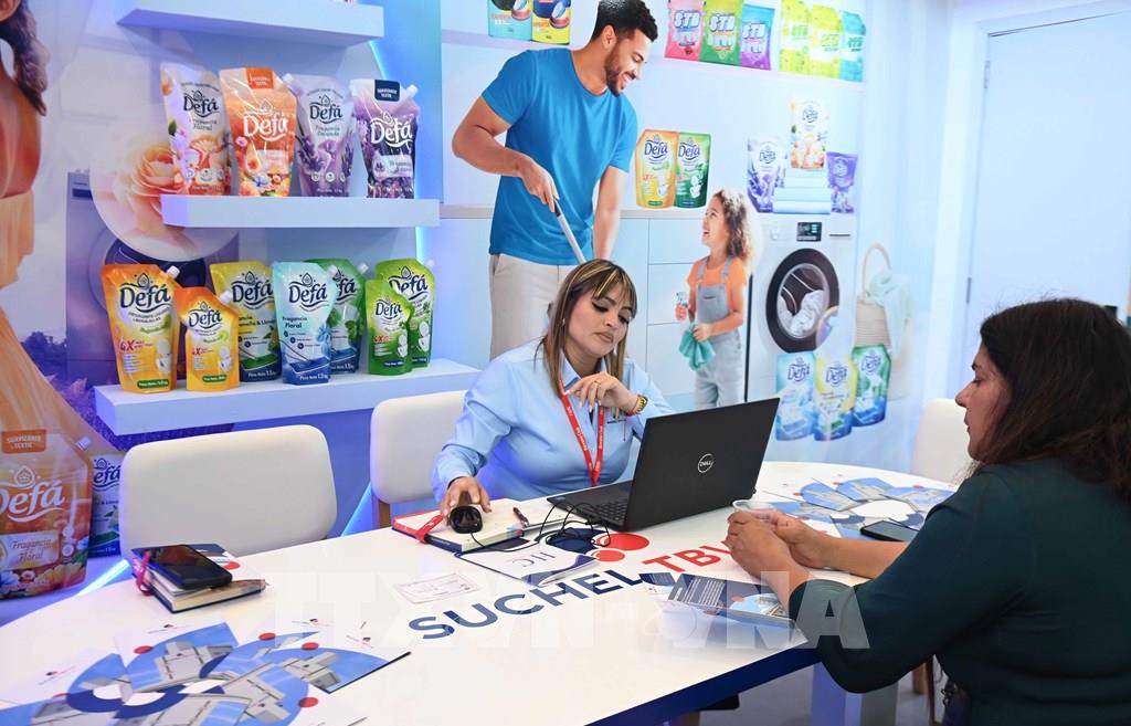 Các sản phẩm chất tẩy rửa của Thái Bình tại FIHAV 2025. Ảnh: Việt Hùng - PV TTXVN tại Cuba