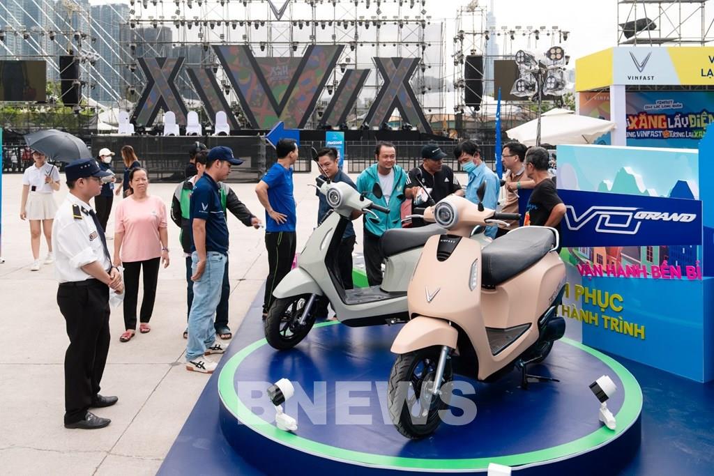 Nhiều khách hàng quan tâm đến sản phẩm xe máy điện của VinFast. Ảnh: Văn Xuyên/BNEWS/TTXVN