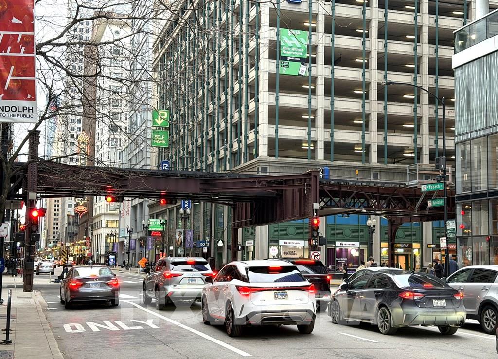 Xe ô tô lưu thông trên một tuyến phố ở thành phố Chicago (Mỹ). Ảnh: Ngọc Quang - PV TTXVN tại Mỹ