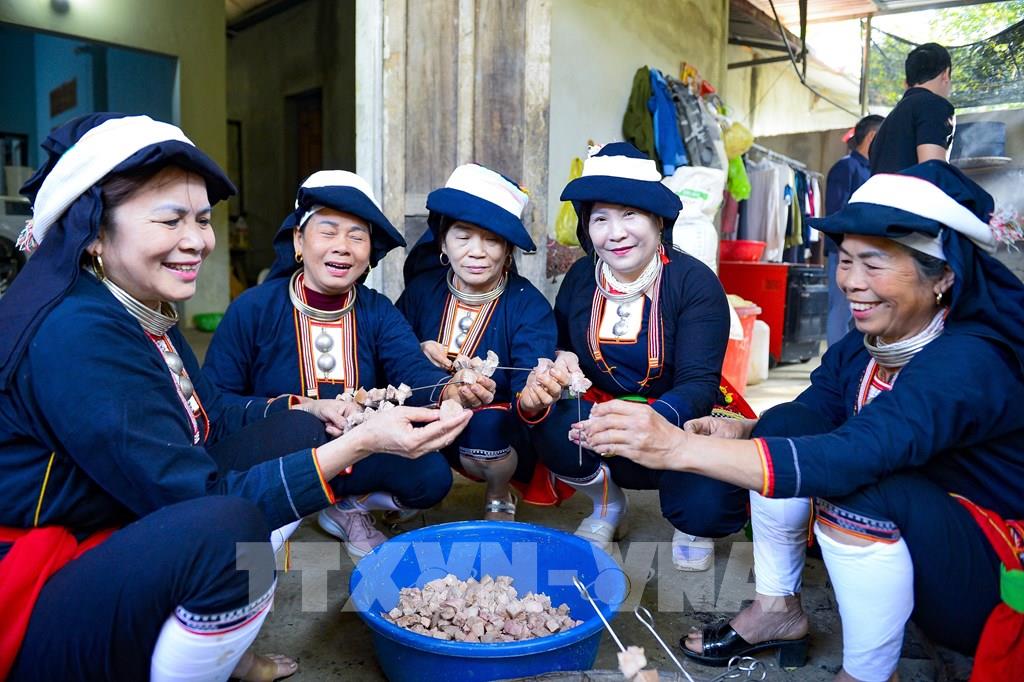 Phụ nữ Dao chuẩn bị cỗ cho Tết năm cùng. Ảnh: Hoa Mai - TTXVN
