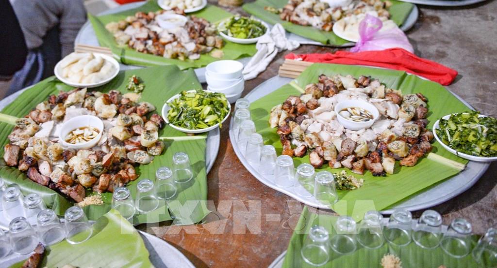 Trên mâm cỗ Tết năm cùng của người Dao quần chẹt xứ Thanh. Ảnh: Hoa Mai - TTXVN