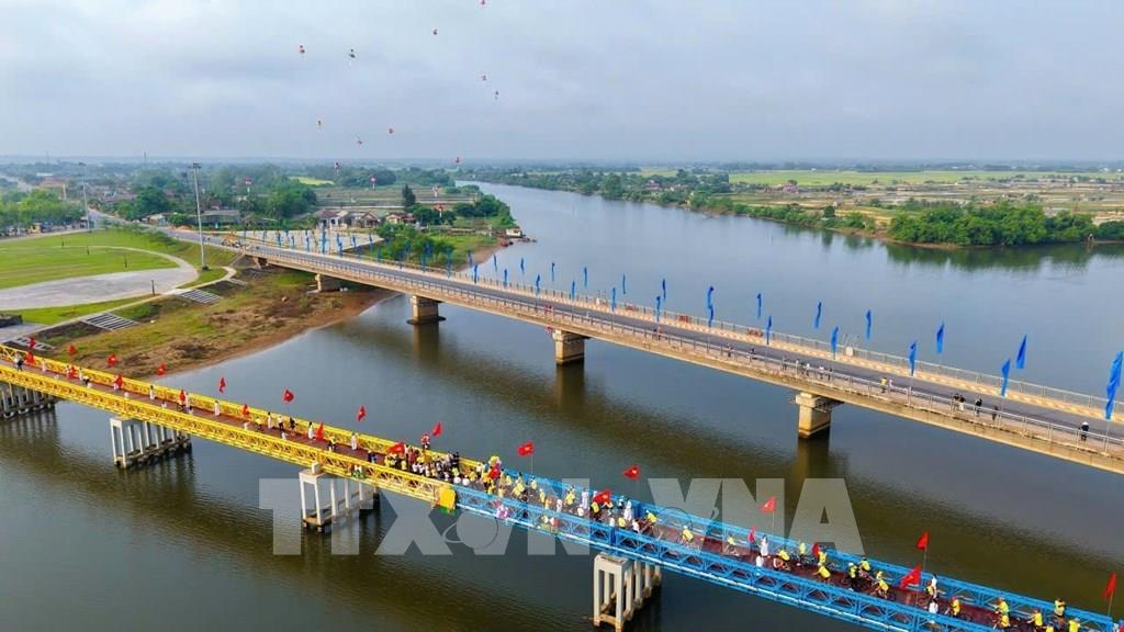 Cầu Hiền Lương hai màu xanh - vàng - vừa ghi dấu nỗi đau chia cắt, vừa thể hiện ý chí kiên cường và Chủ nghĩa Anh hùng cách mạng. Ảnh: Tường Vi - TTXVN