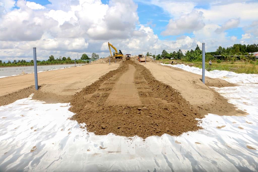 Đoạn đầu tuyến cao tốc Châu Đốc - Cần Thơ - Sóc Trăng giao với quốc lộ 91, thuộc phường Vĩnh Tế, tỉnh An Giang bắt đầu hình hài rõ rệt sau nhiều tháng giải phóng mặt bằng và thi công nền. Ảnh: Thanh Sang-TTXVN